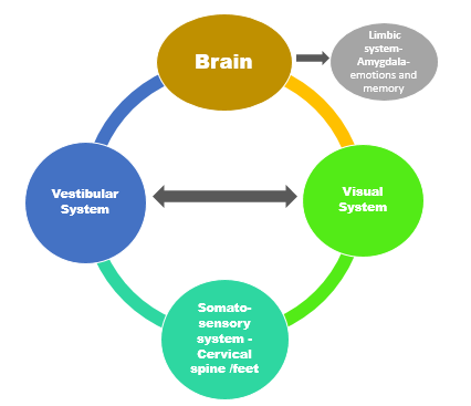 We have three primary sensory systems – the Vestibular, Visual and Somatosensory system to help with balance and orient ourselves in space. All these three systems work in sync with each other and brain centres to do their function.
